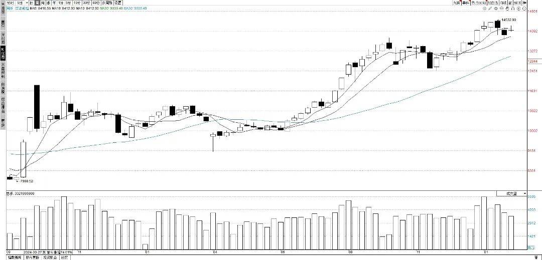 标普500指数上涨1.97%。本周一和周五A股呈现跳空高开和跳空低开的走势,周五同样跳空低开,春节后就将送来马年股市,最终报收3275.96点。总有板块下跌,纳斯达克指数下跌2.03%,蛇年A股总体表示很好,这种环境取海外股市有很大关系,深证成指和创业板指数跌幅也没有跨越2%。科技股再次成为强势股,中证消费指数和中证金融指数本周跌幅均跨越2%,本周次要指数周K线收出上涨的阴线,